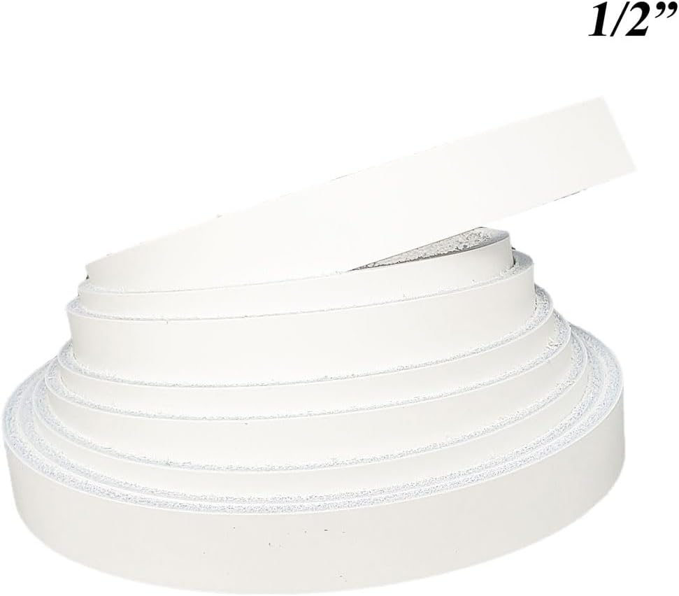 Hard-to-Find 1.25” White Latigo Leather Straps – Custom Lengths from Pitka Leather Looking for a 1.25 inch leather strap that’s both unique and professional grade? Pitka Leather proudly offers hard-to-find 1 1/4 inch wide Latigo leather strips, precision-cut and made from the highest quality full grain designer latigo leather. Perfect for crafting belts, dog collars, purse straps, leather leads, and more—this rare width is finally available in the format you need. Each White Latigo leather strip is 6.7 oz (approximately 2.4–2.8 mm thick), offering just the right combination of strength and flexibility. These strips are cut from premium full grain hides, drum dyed for rich, lasting color, and carefully selected to be blemish-free, with no scratches, defects, or filler. At Pitka Leather, we make it easy to order exactly what you need. Choose from our pre-cut stock lengths: 24", 36", 48", 60", 72", 84", and 96", or request a custom cut tailored to your specific project. Each strap is cut at 12" intervals for precision and waste-free crafting. No trimming. No sanding. No dyeing required. Why Choose Pitka Leather 1.25” Latigo Leather Strips? ✅ Hard-to-Find Width – Rare 1.25 inch leather strap now available and in stock ✅ Custom Length or Stock Sizes – Order exact lengths: 24"-96" in 12" increments ✅ Full Grain Cowhide – Strong, real leather; not PU, bonded, or reconstituted ✅ Vibrant Drum-Dyed White – Long-lasting color that won’t rub off or fade✅ Ready to Use – Smooth top grain and lightly buffed back, no prep needed ✅ Perfect for Crafting – Great for leather belts, dog collars, camera straps, and more ✅ Ideal for Foil Stamping and Engraving – Dense surface takes foil and detail beautifully From artisan makers to small business crafters, our Latigo leather strips in this rare 1.25 inch width are designed to elevate your work. Get the professional look and lasting quality your leather goods deserve—without settling for oversized, undersized, or cheap leather alternatives. Pitka Leather is your source for premium 1.25” leather straps, White Latigo leather strips, and custom-cut leather—made in the USA and crafted with pride.