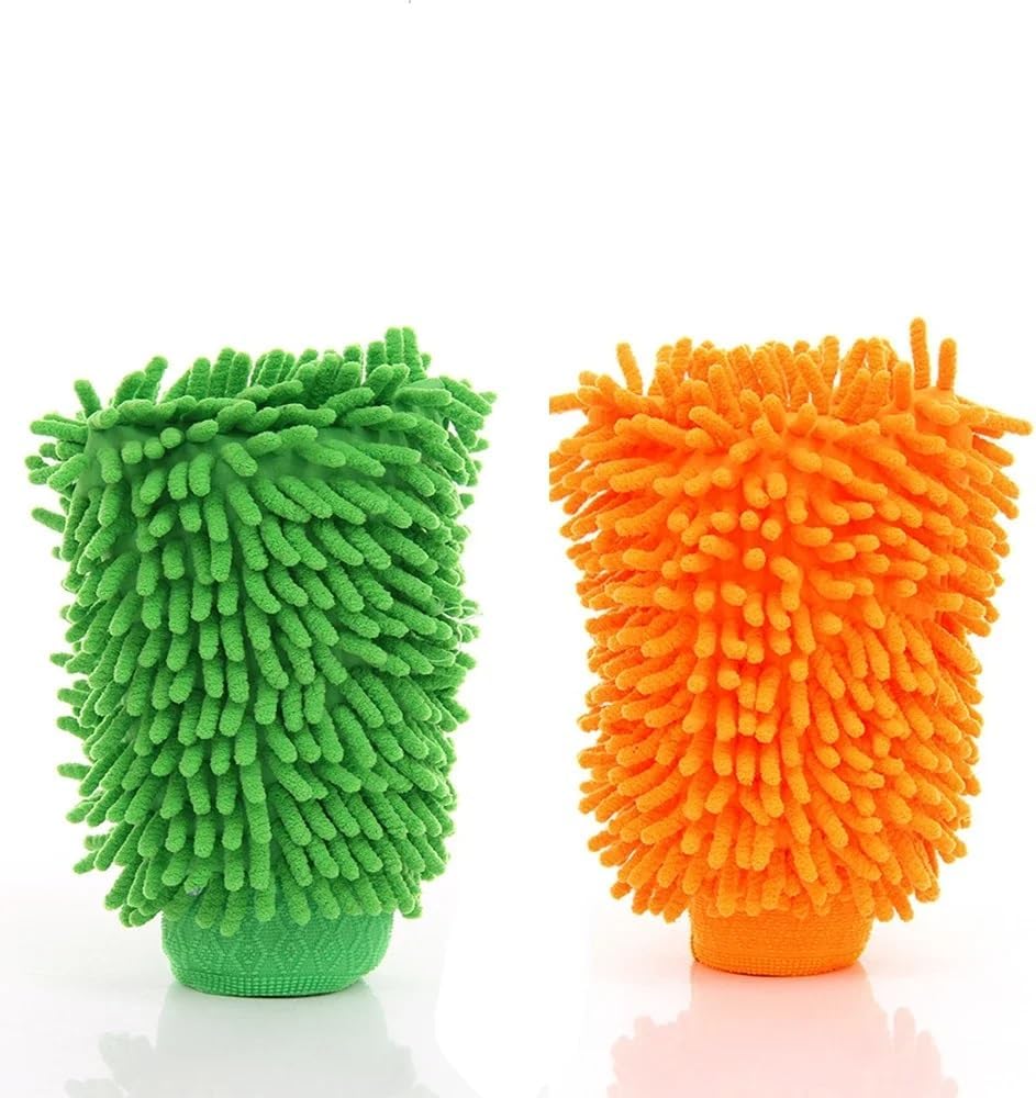 1/2/6Pcs Microfiber Car Wash Gloves Chenille Car Mitt Cleaning Tool Car Detailing Thick Car Care Detailing Brushes Washer Sponge Orange 2Pcs