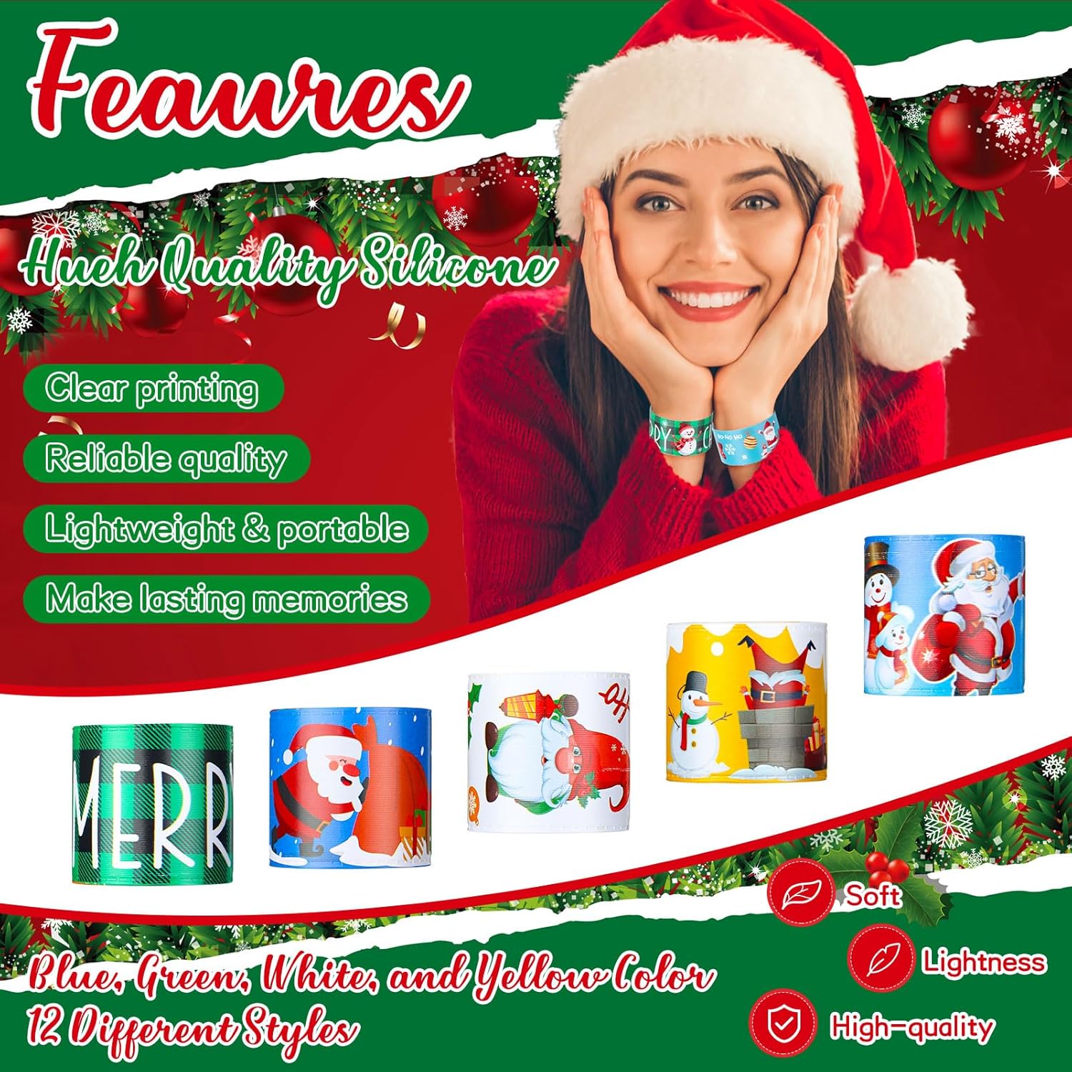 | Included Components | 240 x Christmas slap bracelets |