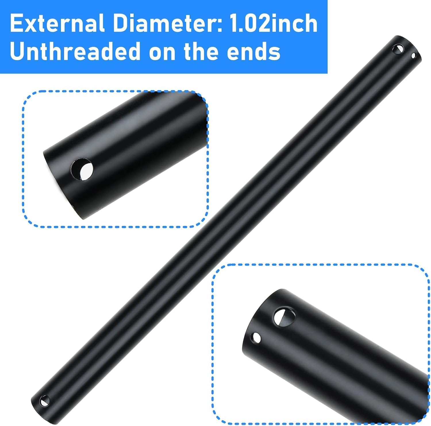 Features: Upgrade your ceiling fan’s performance and aesthetics with our 36-Inch Downrods for Ceiling Fans, designed to optimize airflow and elevate your room’s decor. Crafted for high ceilings, this 1.02” diameter ceiling fan extension downrod ensures your fan hangs at the ideal height, maximizing air circulation for a cooler, more comfortable space. Please confirm the dimensions are correct before placing your order. Specifications: Material: Metal Color: Black Size: As shown in the figure Package includes: 1 x Ceiling Fan Extension Rod Notes: For manual measurement, please allow slight errors in size. The color may have a slight difference due to different screen displays.