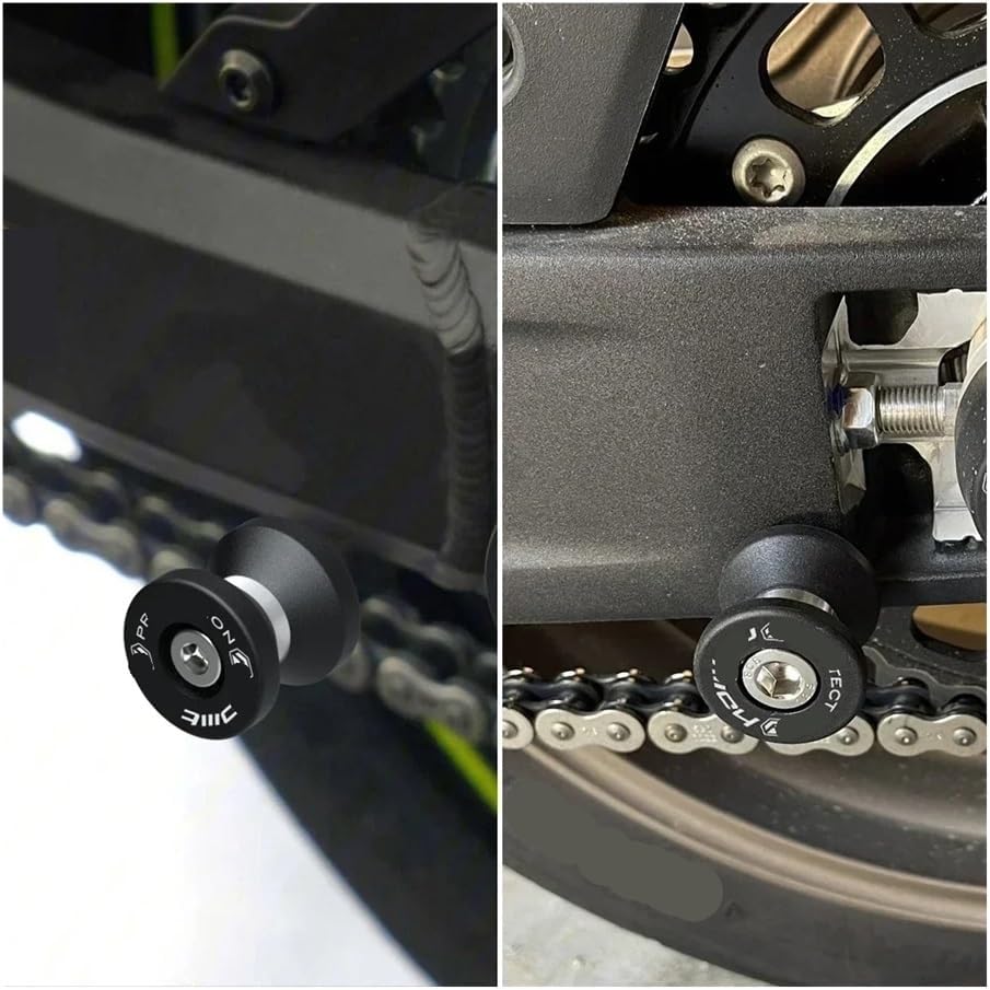 For 6MM 8MM 10MMColor: Matte blackNylon and aluminumPackage Include: One Set Stand BobbinCNC Aluminum Motorcycle Swingarm Spools Slider Stand Lifting Screw Scooter