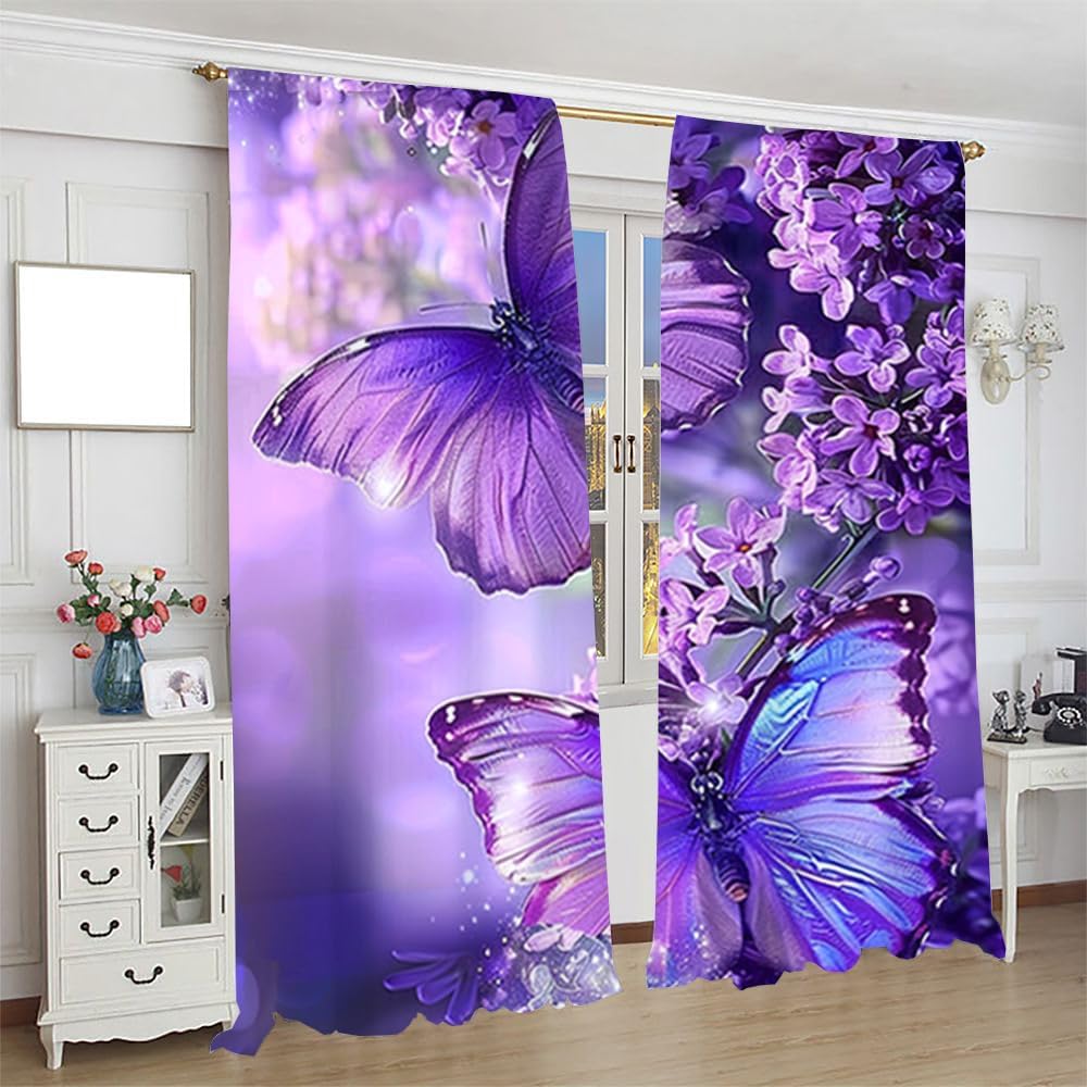 brebasf This Watercolor Purple Butterfly curtain combines the latest fashion trends with groundbreaking performance technology to provide you with the best possible home environment without compromising on style! Total size: 45"" L × 42"" W (114cm × 107cm),Includes two pieces, each of which measures:45"" length × 21"" width (114cm × 53.5cm). Total size: 54"" L × 42"" W (137cm × 107cm),Includes two pieces, each of which measures:54"" length × 21"" width (68.5cm × 53.5cm). Total size: 63"" L × 42"" W (160cm × 107cm),Includes two pieces, each of which measures:63"" length × 21"" width (160cm × 53.5cm). Total size: 63"" L × 55"" W (160cm × 140cm),Includes two pieces, each of which measures:63"" length × 27.5"" width (160cm × 70cm). Total size: 63"" L × 63"" W (160cm × 160cm),Includes two pieces, each of which measures:63"" length × 31.5"" width (160cm × 80cm). Total size: 72"" L × 63"" W (183cm × 160cm),Includes two pieces, each of which measures:72"" length × 31.5"" width (183cm × 80cm). Total size: 63"" L × 72"" W (160cm × 183cm),Includes two pieces, each of which measures:63"" length × 36"" width (160cm × 91.5cm). Total size: 84"" L × 84"" W (214cm × 214cm),Includes two pieces, each of which measures:84"" length × 42"" width (214cm × 107cm).1. Made of durable polyester fiber,soft and light. 2 The package includes: 2 panels. Curtain material: 98% polyester fiber. Provide a beautiful appearance for your bedroom,living room or office. 3. The curtains are grommet,which can be used with any standard curtain rods. Our products can be used as living,room curtains. Mother's Day,Christmas,Halloween,Thanksgiving,New Year's party decorations at home! We believe that you will like this curtain as much as we do. If you are not satisfied with our products,please contact us,we will solve any problems encountered by the products for you,so that you are satisf