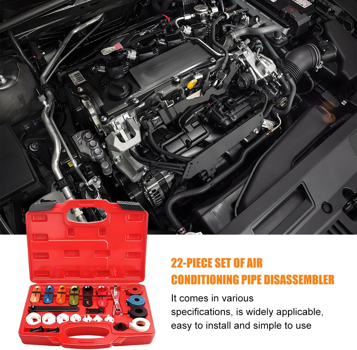 Specifications: Material: alloy, plastic Color: red Size: 11.81×8.66×2.76 inches Weight: 1000g/35.27oz Quantity: 22 Why you need our product? -1.This product features color-coded markings, allowing for an at-a-glance identification of various tools and enabling quick selection of corresponding components, thereby saving time in tool retrieval. -2.The housing of this product features a dedicated card slot, ensuring tools are neatly arranged without clutter, making both retrieval and storage effortless.