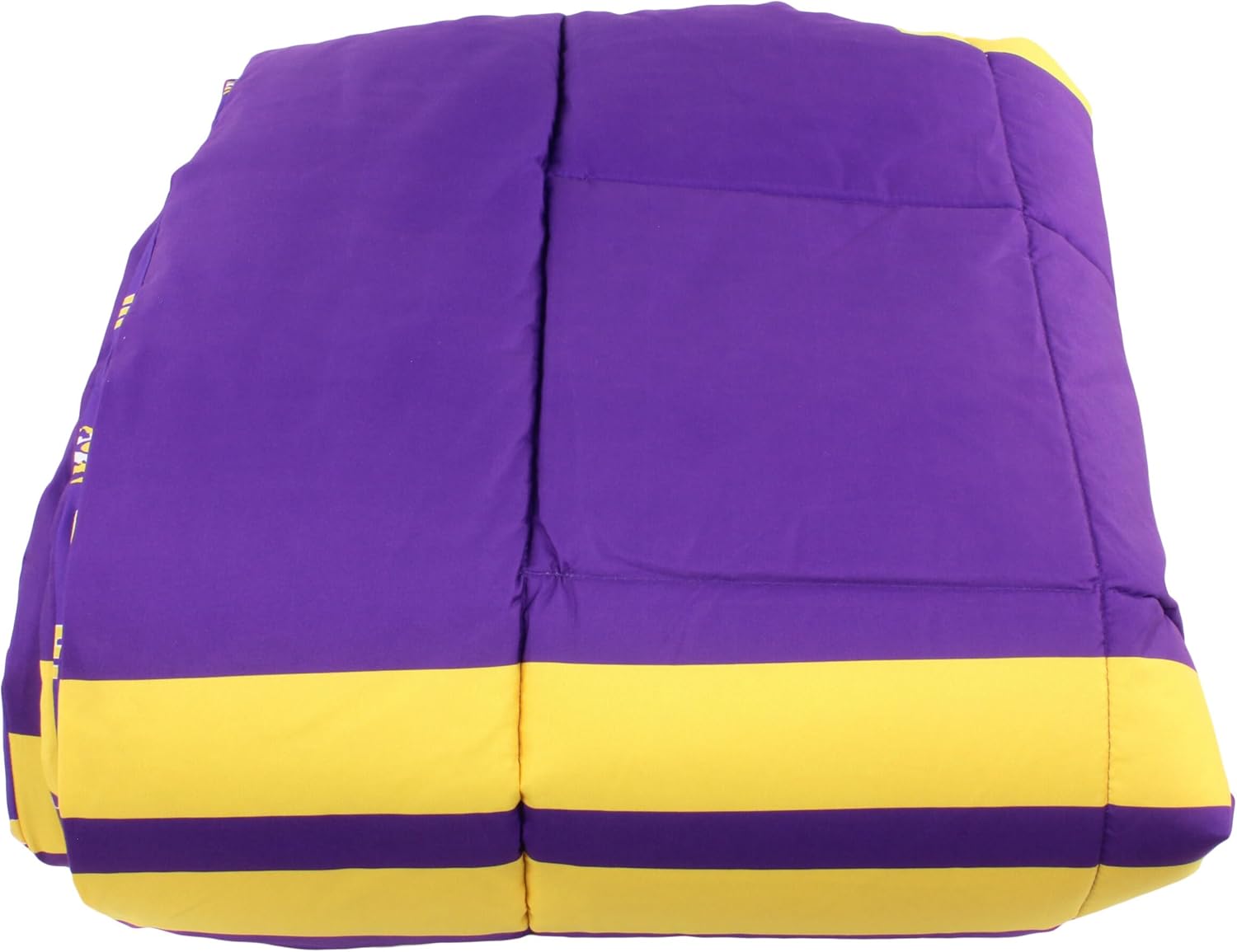 LSU Tigers licensed, College Covers branded comforter includes 1 queen sized comforter to begin or to finish decorating a team themed bedroom. Our comforter comes with: 1 queen sized reversible comforter. Matching pillowcases are available, but they are sold separately. We also have matching sheet sets, dust ruffles and curtains, all sold separately. The comforter measures 96 inches by 86 inches and is quilted to eliminate the poly fill from bunching. Our 100 percent polyester comforter is machine washable. We recommend to use an oversized commercial washer and dryer to wash and dry to eliminate any fabric rubbing on the sides, this could potentially cause problems. Wash in cold water with like colors and tumble dry on a low heat. Imported and officially licensed by Everything Comfy.