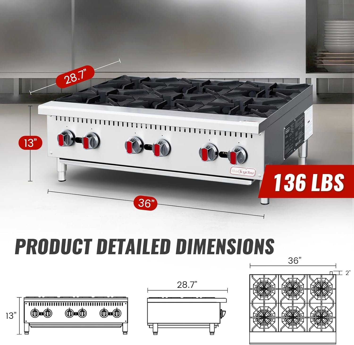 | Size | 6 burner-36" |