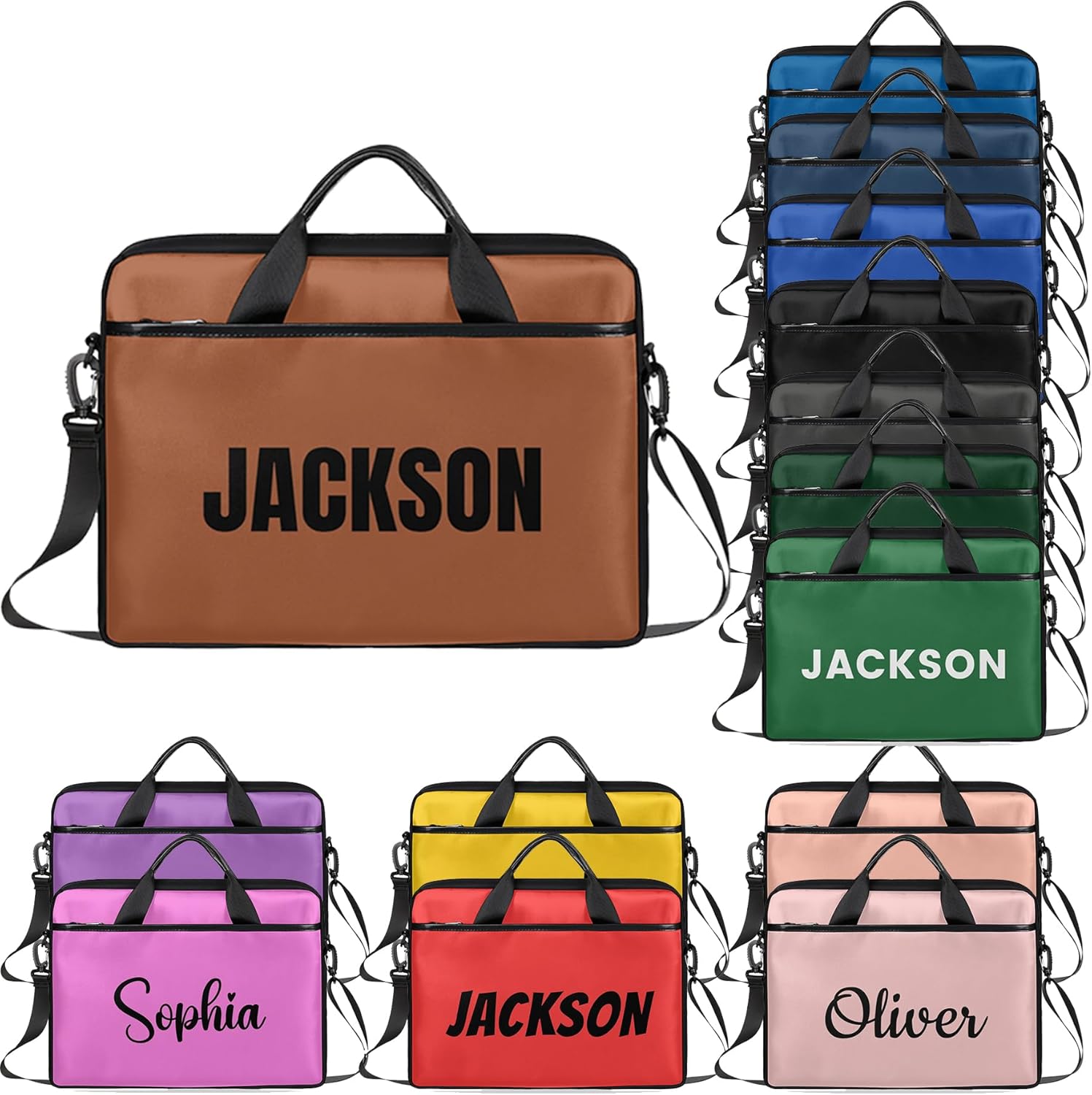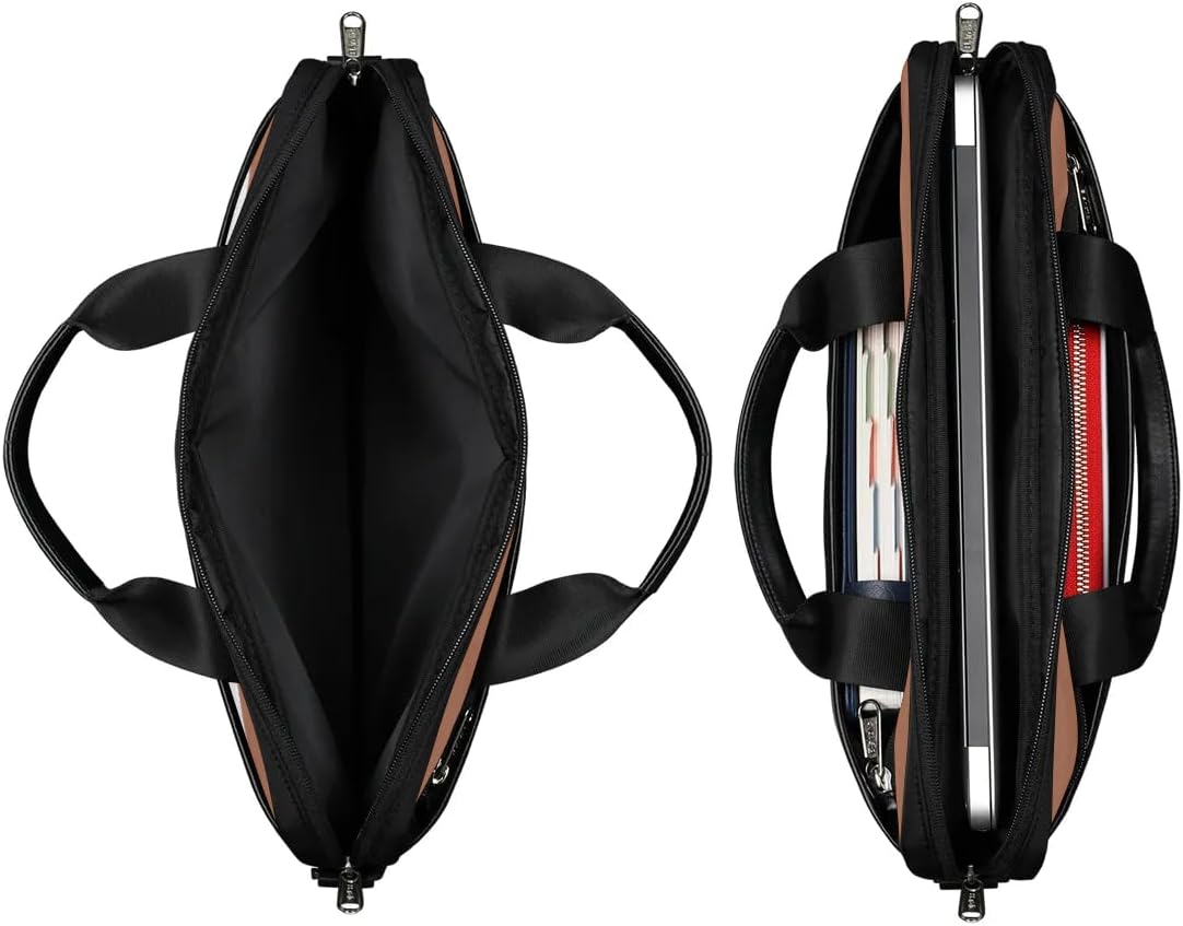 1 main pocket with zipper, 1 pocket on each side of the computer, and 2 small pockets inside one of the pockets for easy storage of loose change, cell phone and other items.Inside the main pocket is a separate computer compartment, suitable for storing size 13-15 inch laptop, computer or tablet. This computer bag can be hand-carried or shoulder-crossed, the handle is made of leather, softer, more comfortable to carry and reduce the feeling of strangulation. The shoulder strap is removable and adjustable, with non-slip shoulder pads to reduce the burden on the shoulder.Applicable scene: multi-scene applicable, can be used for work, travel and other places to use.Computer bag size:15*1*11 inches, strap length 31.5-51.2 inches.Care: hand washable, not machine washable, no bleaching, no exposure to sunlight.