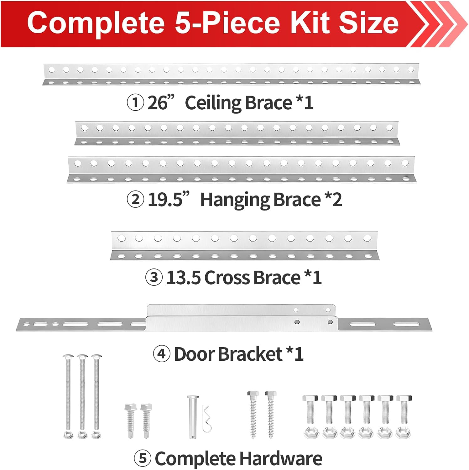 | Included Components | 13-1/2 Inch Cross Brace (1), 19-1/2 Inch Hanging Braces (2), 20-inch Door Bracket (1), 26-inch Ceiling Brace (1), Carriage Bolts |