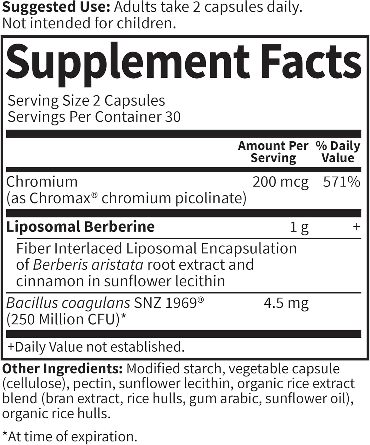 Designed for those seeking comprehensive blood sugar and heart health support, Garden of Life Liposomal Berberine is a powerhouse formula featuring clinically studied ingredients, including potent liposomal berberine and highly absorbable chromium picolinate (Chromax®), plus a unique probiotic to help promote digestion.* Our innovative liposomal delivery system wraps berberine in non-GMO sunflower lecithin for optimal absorption, ensuring these powerful ingredients are efficiently utilized by your body. Garden of Life Liposomal Berberine is Non-GMO, NSF Certified Gluten-Free, Star K Kosher, and made without artificial dyes and fillers. Adults take 2 capsules daily for overall heart health support.* *These statements have not been evaluated by the Food and Drug Administration. This product is not intended to diagnose, treat, cure or prevent any disease.