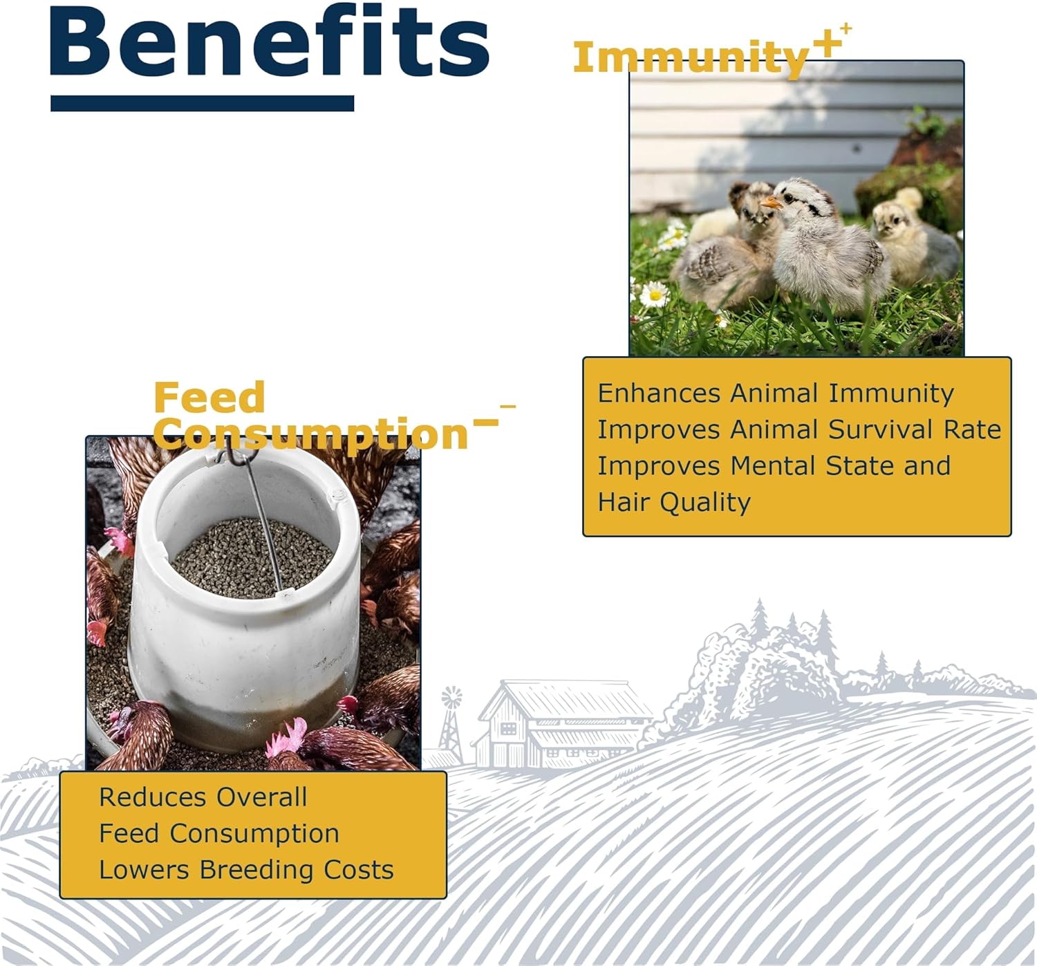 Feed formulated specifically for hens to support health and productivity. Made from 100% dried Black Soldier Fly larvae, a natural and sustainable protein source. Contains 115 times more calcium than mealworms, promoting strong eggshell formation. Enhances egg production and overall vitality in chickens. Packaged in a resealable bag to maintain freshness and nutrient integrity. Organic, grain-free, and rich in dietary fiber and high-quality protein. Free from artificial colors, flavors, and preservatives, ensuring safety. Suitable for chickens, bluebirds, turtles, reptiles, and hamsters. Ideal for all animal life stages, from chicks to adult poultry. Container type: Resealable Bag in Retail Box. Bird type: chickens, bluebirds. Animal lifestage: all life stages.