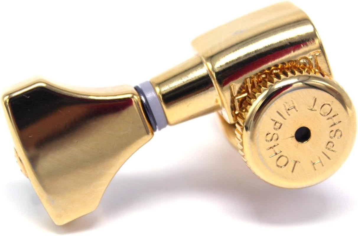 Keep your shredder in precise tuning. Hipshot's Grip-Lock guitar tuning pegs grip your strings for positive, accurate tuning. The component is designed for a headstock configuration of three tuning machines per side. 18:1 gear ratio.