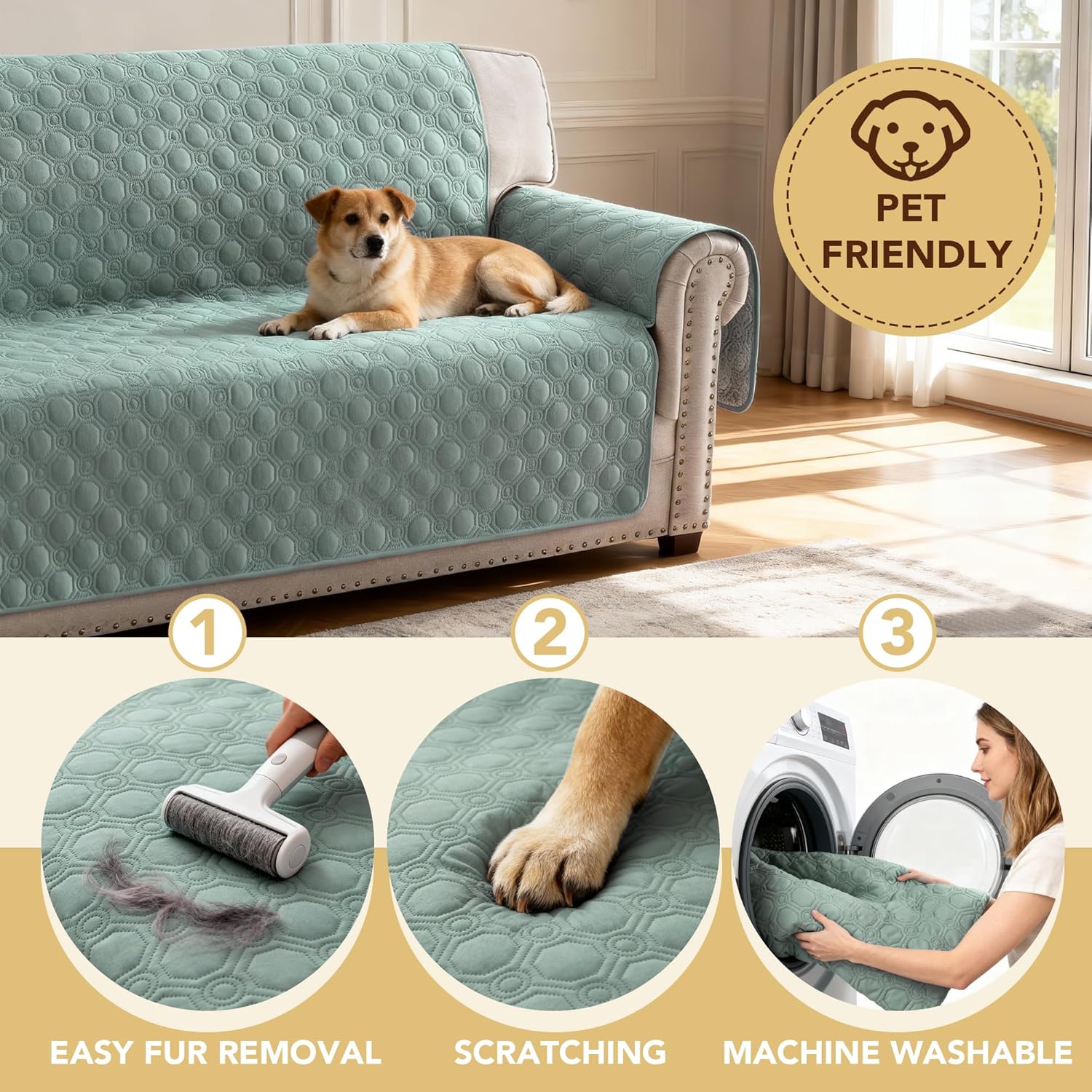 • 100% WATERPROOF: Sofa cover is composed of 5 layers with filling soft material, thick and durable. Adopts surface 100% waterproof technology and TPU composite technology on the back of the fabric. Stitching and splicing area also uses a fully waterproof widened edging strip. Therefore, the cover can achieve 100% waterproof, helps your sofa resist daily stains.
