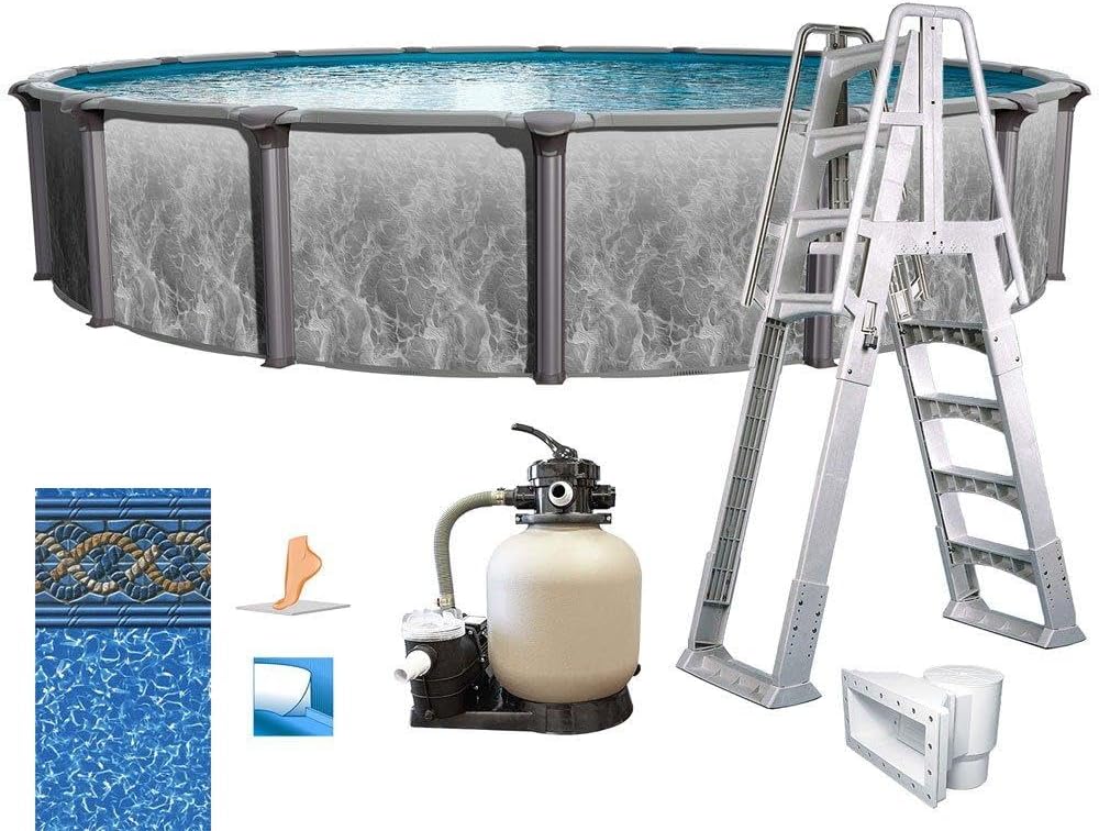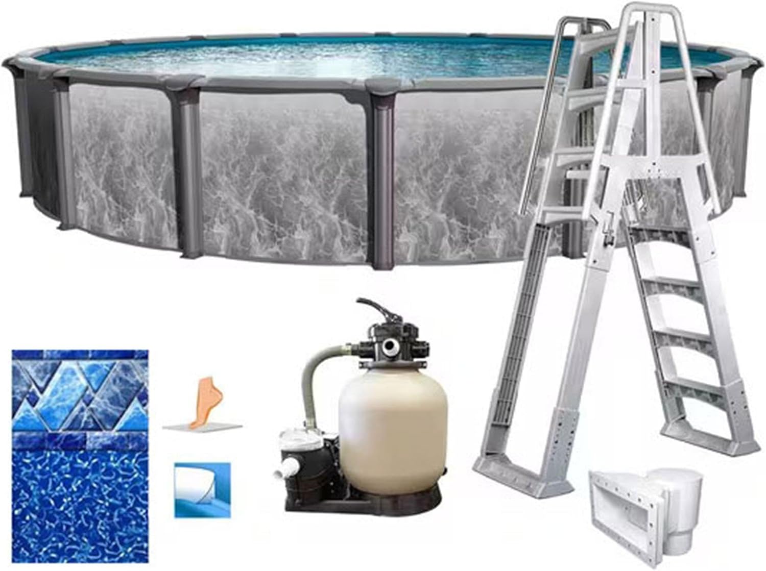 The In The Swim Freestyle offers an entry-level above ground pool crafted from sturdy steel components, ensuring enduring strength and enjoyment. Built with galvanized steel plates, bottom rail, and stabilizer, along with robust 6" wide top ledges and 5-inch wide uprights, it guarantees stability and safety for swimmers. Coated with Krystal Kote for optimal corrosion and UV resistance, the top ledge and uprights maintain their integrity over time. Boasting a charming sandy finish and an impressive wall pattern, this pool seamlessly enhances any backyard oasis. Ideal for first-time pool owners seeking quality at an affordable price, the Freestyle Above Ground Swimming Pool is the perfect choice.