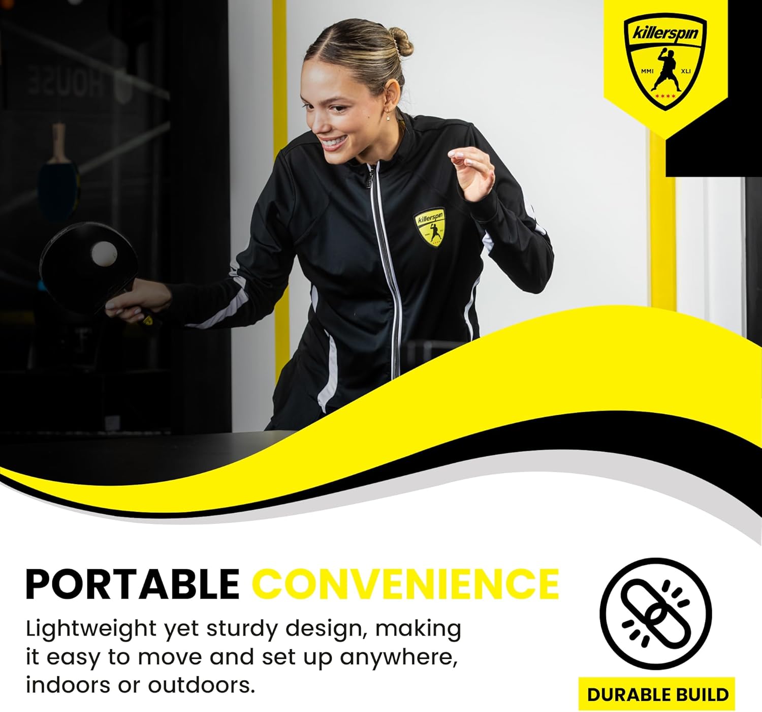 MyT 415X Mega Indoor Ping Pong Table Introducing the MyT 415X Mega Indoor Ping Pong Table by Killerspin – the perfect addition to your home or workspace for collective play and quality leisure time. With its innovative folding design and convenient storage pockets for balls and paddles, the MyT 415X Mega ensures you're always prepared to step away from the digital world and engage in enjoyable moments with family, friends, and coworkers. Designed for players of all skill levels, ages, and abilities, the MyT 415X Mega embodies premium build qualities that enhance everyday table tennis experiences. Whether in offices, workspaces, schools, or recreation centers, this table is crafted to withstand extensive use and deliver consistent performance. Here's why the MyT 415X Mega stands out: 18mm Thick Table Top:Ensures a reliable and consistent bounce, free from dead spots. Professional Regulation Standard Size:Meets the standard size requirements for professional play. Scuff-Resistant UV Finish:Protects the surface from ball marks, maintaining the table's aesthetic appeal. 4 Built-In Levelers:Provide a precisely calibrated playing surface, enhancing the overall gameplay experience. Locking Wheels:Secure and stabilize the table during high-intensity sessions, while also allowing easy mobility. 1-Player Solo Practice:Fold up one side for solo practice with a repeat ball return. Space-Saving Design:Fold and store the table conveniently, making it ideal for rooms with shared uses. Elevate your table tennis sessions with the MyT 415X Mega – where playability meets durability in a sleek and functional design. As our gift to you with purchase, create a one-of-a-kind MyT 415X Mega table for your game room with a free custom decal. Complete our customization form or reach out to the concierge line at 1.866.577.5291 to get started.