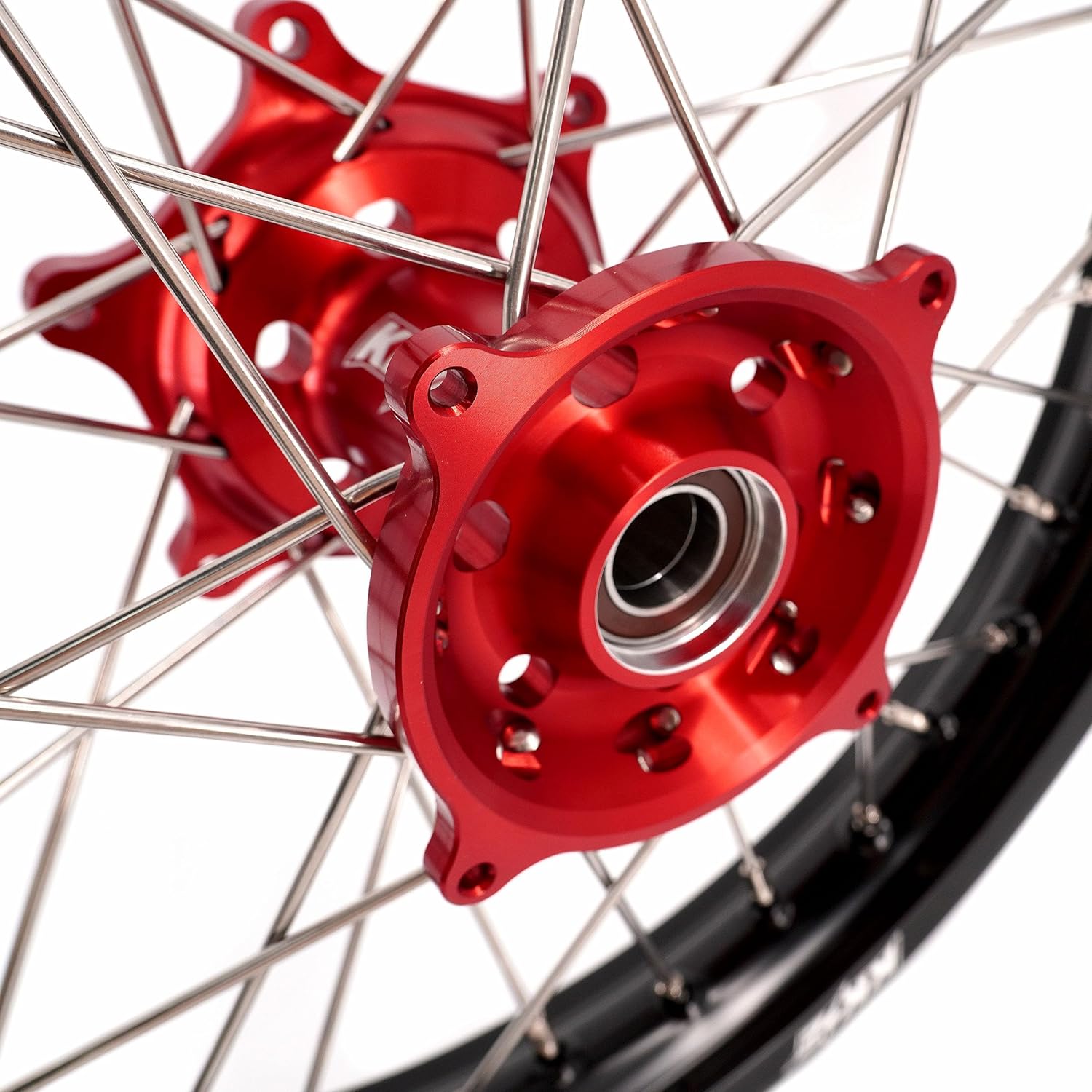 KKE 21/19 MX CNC Motorcycle Wheels Rims Set Compatible with HONDAFeatures:100% Brand New, Strong enough for off-road and racing6082-T6 Aluminum CNC Hub, Stronger than stock hub7050-T6 Aluminum GLM Rim7075-T6 Aluminum Spacer304 Stainless Steel Spoke with Alloy nippleWheels are Already Assembled well(with hubs,bearings,spokes and rims)The Seals and Spacers are Packed In Small Package.The Pictures show exact wheels you will receiveKKE wheels will fit your bike plug and playFitment:Compatible with HONDACRF250R 2004-2013CRF450R 2002-2012CR125R 2002-2013CR250R 2002-2013Wheels Could Fit Your Stock Disc And SprocketPlease Check The Fitment Above Before Check out Color:Red CNC HubBlack GLM RimSilver Spoke Silver NippleAnodized Color, last a long timeInstruction For The Order: 1. Please Inform Us The Year And Model Of Your Motorcycle Before Or After Check Out. 2. After The Shipment Of Package, We Will Notify You The Tracking Number. 3. Please Feel Free To Contact Us If You Require More Detailed Information Or Have Any Special Instruction For The Processing Of Your Order. 4.Please Note Wheels are Signature Required Upon Delivery Due To Safety Concern.Warranty Information:1.We Will Accept Return If It Is Not Compatible / Wrongfully Sent / Being Damaged 2.Please Contact Us Before Send The Merchandise Back, Thank You 3.Customer Is Responsible For Return Freight Charges If There Is Nothing Wrong With Our Item.