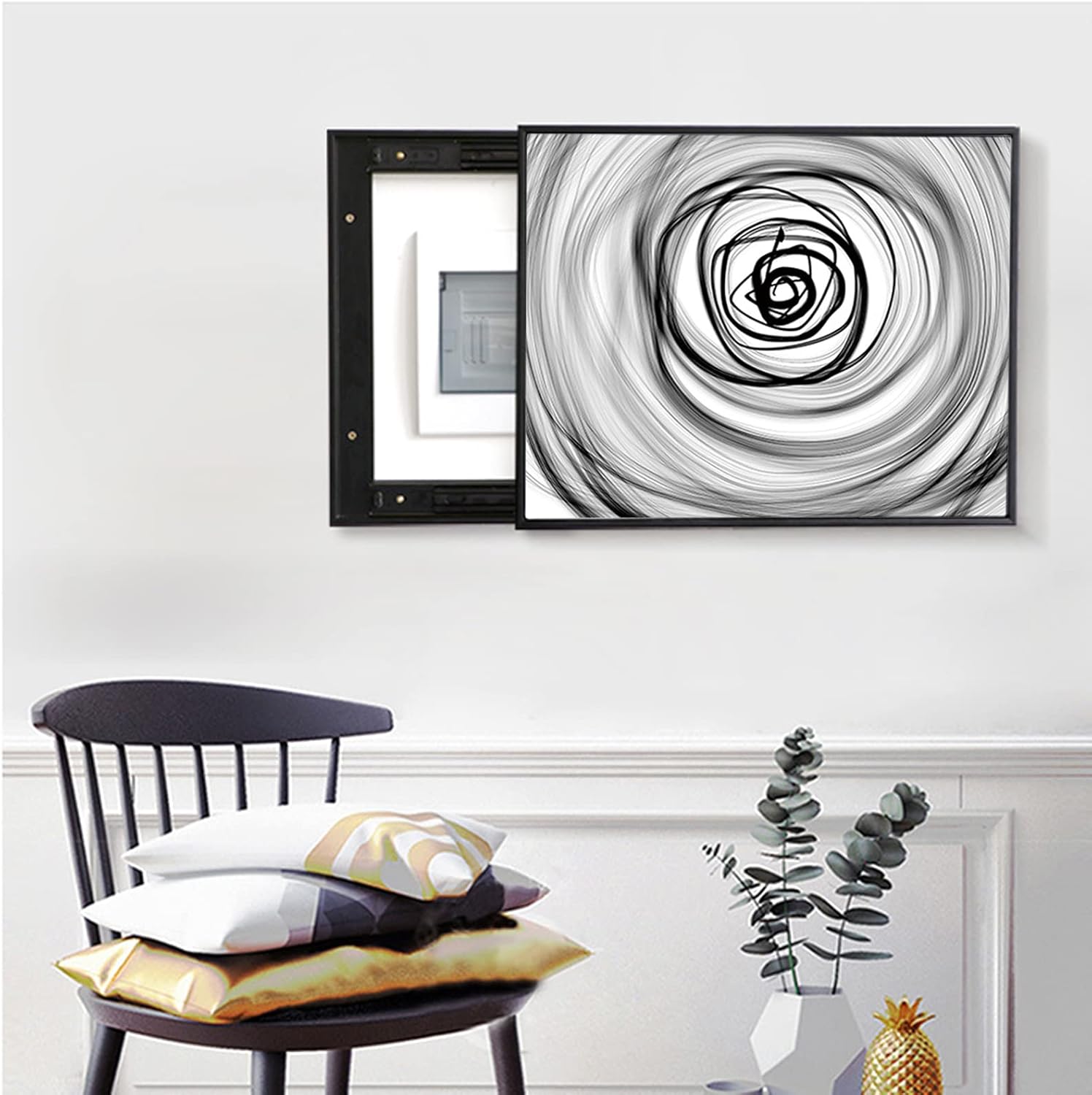 Decorative paintings of electricity meters made of high-quality materials can not only be used for a long time and will not cause negative effects on the body of you and your family. Hide the instrument cluster, create a warm, bright and lively living environment.Product name: Electric meter wall decorationStyle: horizontal style, vertical styleOpening method: push left, push right, lift the lidFrame material: PS framePainting core material: canvasStyle: modern and simpleBorder color: BlackDimension:Outer frame: 40x50cm / 15.75x19.69in, can accommodate electrical box size: 30x40cm / 11.81x15.75inPackage contents:1x Decorative painting for electricity metersNotes:1.Please measure your electrical cabinet meter before purchasing, and the size does not exceed the size of the covered area.2.Please allow slight measurement deviation due to manual measurement, thanks for understanding!3.Due to the difference between different monitors, please understand that the picture may not reflect the actual color of the item.