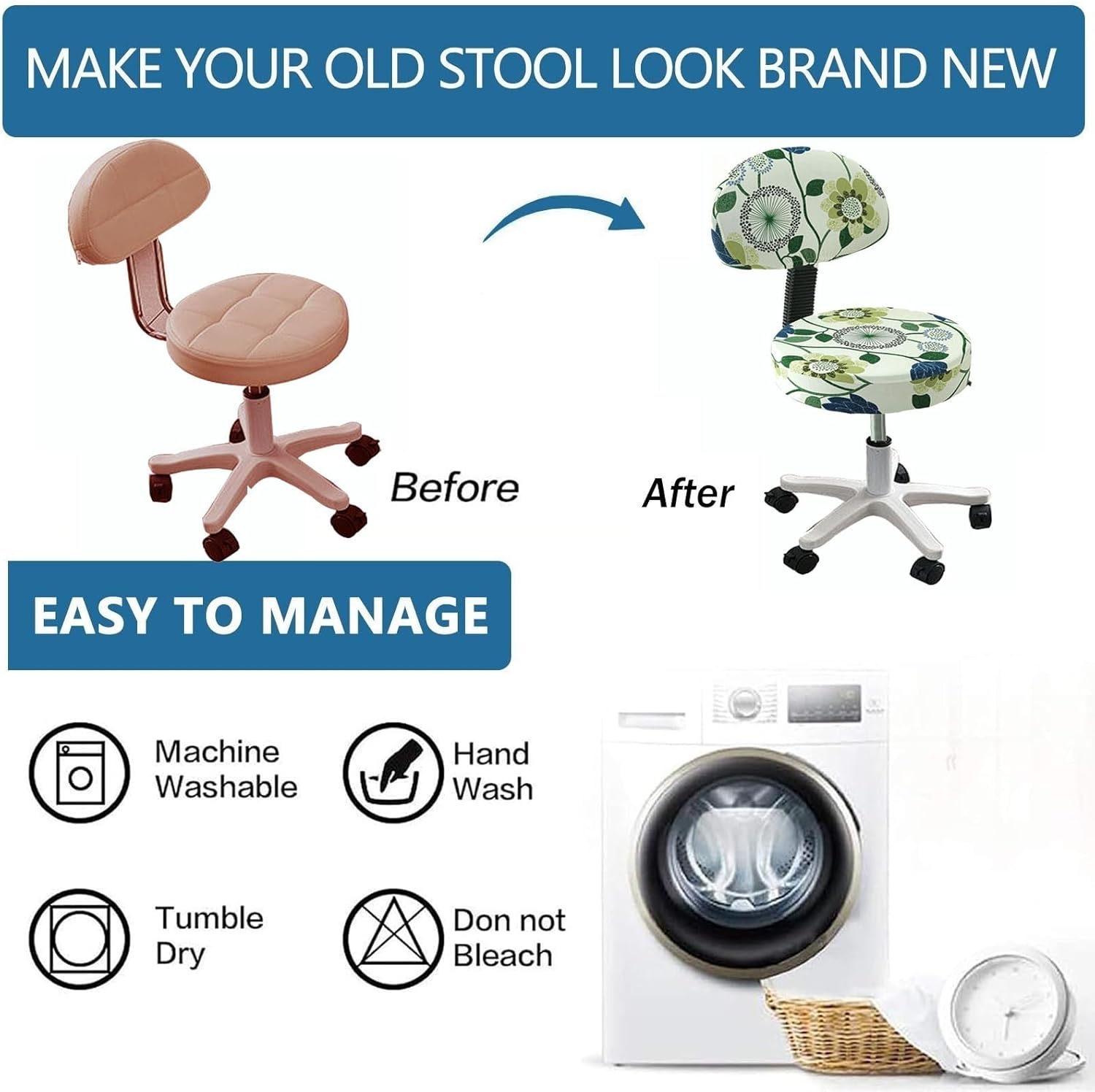 Our stool covers not only prevent furniture from getting dirty, worn, torn and accidentally tipped over, but also keep your favourite stool looking brand new!This chair and stool cover is very elasticated and it makes a practical as well as beautiful room decoration.It is easy to fit and remove, simply slip it in and the elasticated band at the bottom will hold the chair cover in place, providing full protection for your footstool.Please refer to the product size chart and measure the chair before purchase to ensure the best fit.Care Advice:Unbreakable and easy to care for. Machine wash cold, do not bleach, tumble dry low, do not iron.Purchase Instructions.1. As the product size is measured manually, so there may be 1-3 cm measurement error.2. To ensure a perfect fit, please measure the footstool size before ordering.3. 3. There may be some colour difference due to different camera and lighting angles.