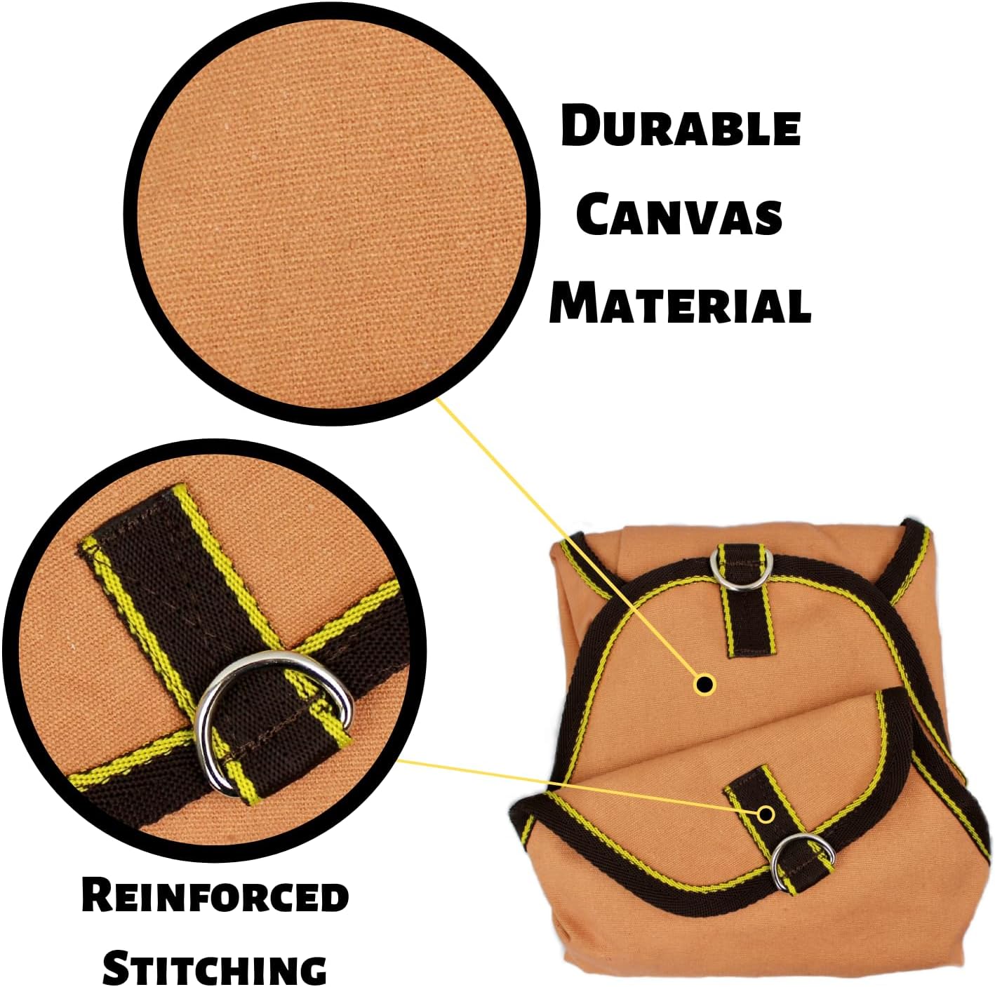 From the Makers of Derby Originals Patented Four Sided Hay Bags and Exclusive Super Tough BottomⓇ Hay BagsOur new and improved canvas hay bags feature a 7" diameter circular opening to allow your animal easy free-choice access to hay without all of the waste and mess of ground feeding. Our feeders can be used in the pasture, inside the barn or stall, or in the trailer.These large hay bags are sold in sets of 2. Our hay bags are made with high-quality natural and breathable canvas and every seam is reinforced. Our canvas hay bags are the largest on the market, measuring 19" long by 20" tall with an extra wide 12" gusset. The average hay bag available today can only fit 1-2 flakes of hay while our feeders can fit 3-4 flakes. With our unique extra wide design, you don't have to worry about your pets running out of food during the day and going hungry. This also means you do not have to refill your hay bags as often.Our mission is to provide you with the highest-quality products possible: we have been designing and selling innovative products for over 25 years in North Canton, Ohio. We are proud to offer a 6 Month Warranty on these canvas hay bags.Using a hay bag has many benefits for the overall health of your animals, including:Decreasing Wasted ForageAiding Gut MotilityAiding in Weight ManagementAllowing Natural Wear of TeethDecreasing Secretions of CortisolImproving Overall DigestionMinimizing BoredomMinimizing Food AggressionPreventing Health Issues Including Bloat, Colic, Laminitis, and Stomach UlcersThese large canvas hay bags are perfect for use with horses, donkeys, mules, cattle, sheep, goats, alpacas, llamas, and other livestock. Our hay bags are safe for use with exotics and are found in over 50 AZA zoos and sanctuaries in the US.