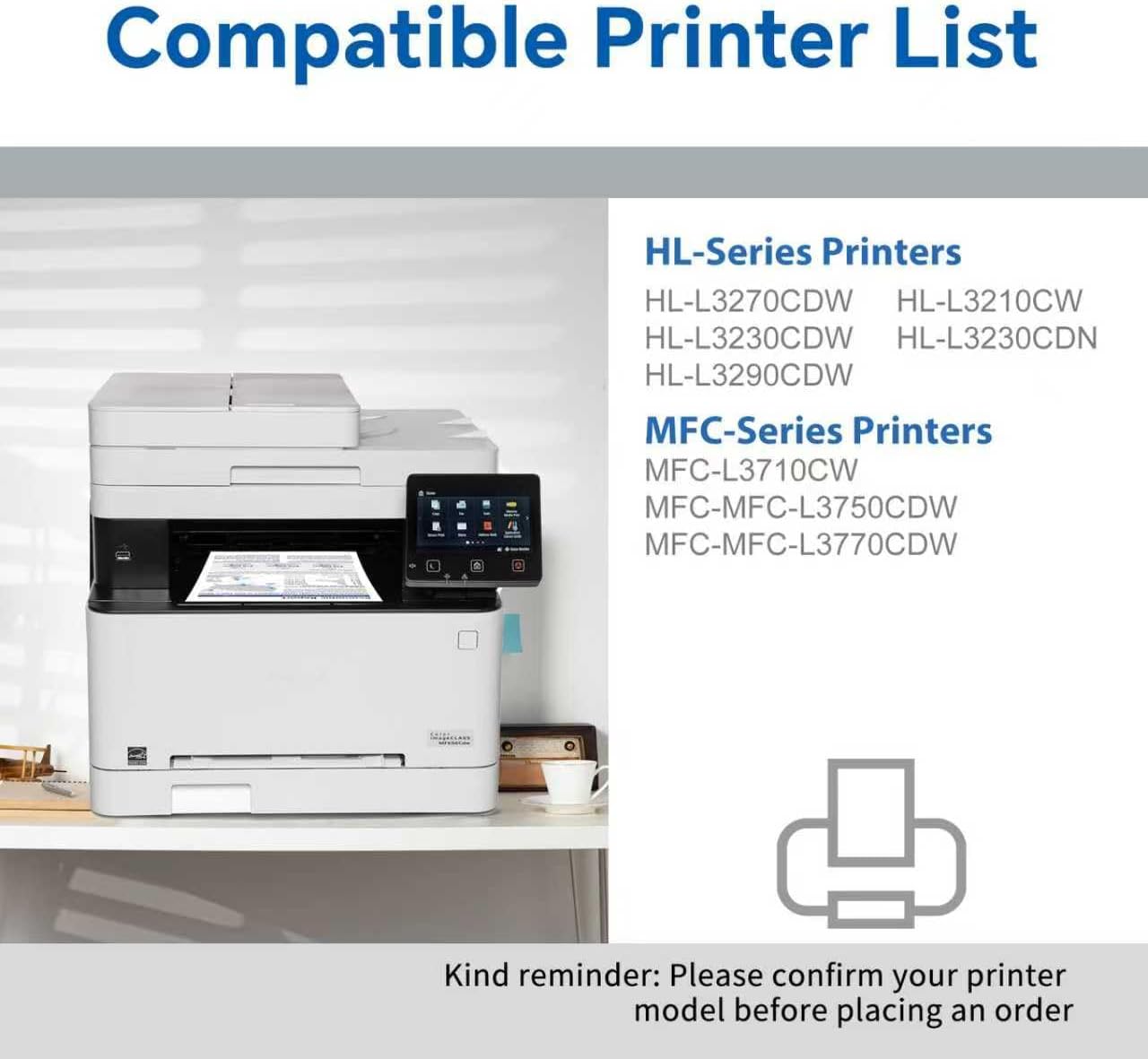 | Compatible Devices | Brother HL-L3270CDW, HL-L3210CW, HL-L3230CDW, HL-L3230CDN, HL-L3290CDW, MFC-L3710CW, MFC-L3750CDW, MFC-L3770CDW |