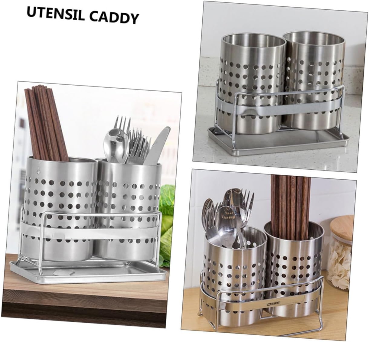 Package Include 1 x set chopstick holder Features -Material: Stainless steel Countertop Organizer -Color:Silver -Size: 20.2x16.3x11.5cm/7.94x6.41x4.52in - This chopstick holder with two large cylinder can hold all kinds of tableware Utensil Holder. - Made of stainless steel, strong and , Chopstick Holder. - The bottom of the drain design can quickly drain water, no water accumulation Kitchen Tool. - Air hole design makes it easy to dry chopsticks quickly Kitchen Organizer. - Widening and height, they are designed to store tableware, placing firmly Utensil.Goods DescriptionUtensil Your kitchen will not be messy again.Utensil Holder Our utensil holders are essential tools in the kitchen.Kitchen Organizer They can neatly organize your tableware.Chopstick Holder This chopstick holder is made of material, and .Countertop Organizer These chopstick holders are scratch-resistant and easy to clean.Kitchen Tool For example, you can store chopsticks, forks and spoons